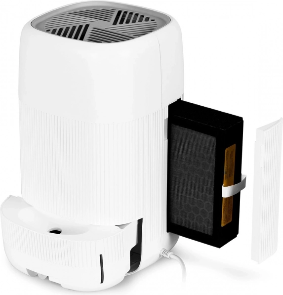 Kompaktan uređaj 2 u 1 za zdrav dom: odvlaživač i pročistač zraka s 3‑stupanjskom filtracijom HEPA 13 uklanja do 99,97 % čestica od 0,3 µm, odvlažuje do 750 ml/dan u spremnik od 1 l. Zahvaljujući Auto‑Defrost radi u rasponu 5–50 °C, nudi tih rad, timer i 2 načina rada za maksimalnu udobnost i sigurnost.