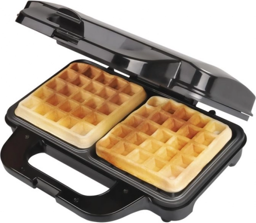 Površina ploča ima neljepljivi premaz, pa se tijesto ne lijepi i čišćenje je brzo i jednostavno. Sigurno rukovanje omogućuje hladna ručka, a stabilnost tijekom rada protuklizne nožice. Uređaj je dizajniran tako da uvijek ispečete 2 velika vafla izvrsne strukture.