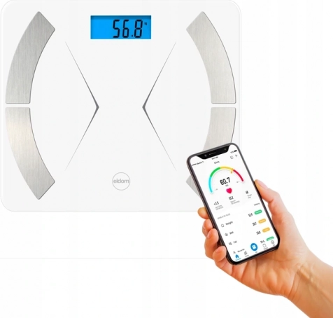 Istražite svoje tjelesne parametre uz vagu Eldom, koja koristi BIA tehnologiju za analizu dvanaest podataka o vašem tijelu, uključujući težinu, BMI, udio masti, mišićnu i tjelesnu vodu i još mnogo toga. Vagom možete mjeriti i okolnu temperaturu te spremati podatke za više korisnika zahvaljujući ugrađenoj memoriji i povezivanju s iOS i Android uređajima.