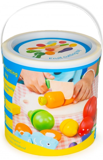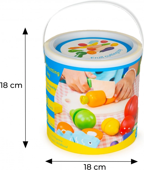Siguran drveni nož i polovični dijelovi potiču finu motoriku, pravilan hvat i koordinaciju oko–ruka. Idealno za djecu od 3 godine.