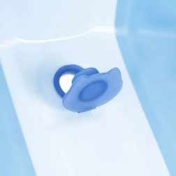 Mekani gumeni čep bez oštrih rubova lako se izvlači, a pri previsokoj temperaturi vode pobijeli. Kupanje je tako sigurnije i udobnije.