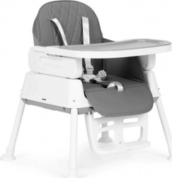 Stolicu je moguće podesiti po visini. Noge i oslonac za noge možete lako skinuti, zahvaljujući čemu se visoka stolica pretvara u nižu stolicu. Jedinstveni element je sjedalo koje se može koristiti na klasičnoj blagovaonskoj ili kuhinjskoj stolici. U kompletu dolaze posebne trake za pričvršćivanje na sjedalo i naslon klasične stolice.