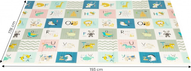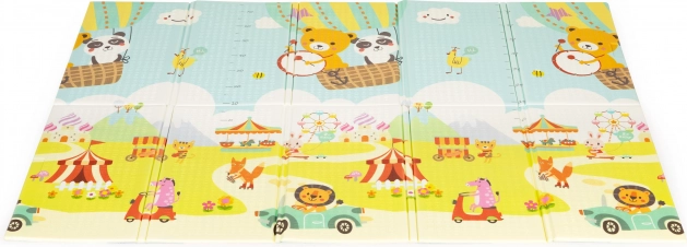 Obostrani tisak donosi dvostruku dozu zabave: s jedne strane cirkus sa životinjama, vozilima i atrakcijama, s druge abeceda i nazivi životinja za razigrano učenje. Podlogu jednostavno složite u kompaktan paketić i spremite u priloženu torbu – idealno za dom, kod bake i na putovanja.