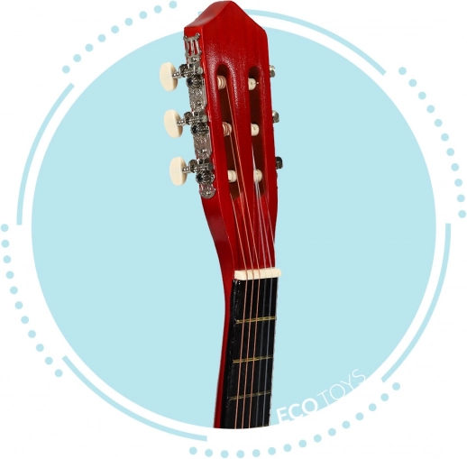 Gitara ECOTOYS donosi glazbeno veselje u vaše domove. Ovaj instrument potiče razvoj glazbenog talenta kod djece koja vole zvukove, ples i slušanje glazbe. Klasičan izgled i čvrsta konstrukcija čine ovu gitaru idealnim izborom za prve glazbene korake djeteta s minimalnim rizikom od oštećenja.
