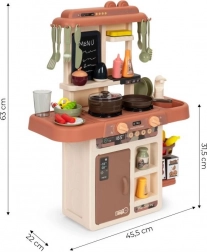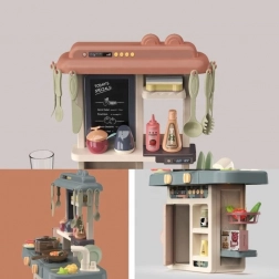 Kuhinjska ploča nudi stvarne funkcije, uključujući generator pare i osvijetljene plamenike. Ima pravi vodeni slavinu i mali kuhar može pisati narudžbe na pripremljenoj ploči za crtanje kredom.