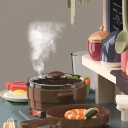 Dječja kuhinjica koja će privući djecu na sate sjajne zabave. Ovaj set omogućuje malim kuharima oponašanje odraslih i stvaranje ukusnih jela za cijelu obitelj. Opremljena svjetlosnim i zvučnim efektima, kuhinjica podučava djecu pravilima kuhanja i razvija njihovu kreativnost.