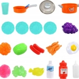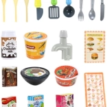Lonac s poklopcem, tava, tanjuri, pribor za jelo, voće i povrće, napici i „namirnice” – sve što je potrebno malim kuharima u jednom paketu.