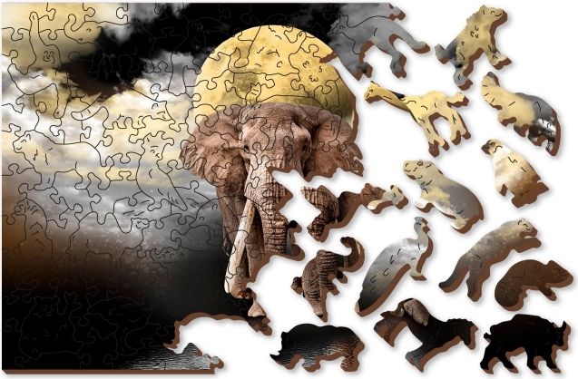 Drvene puzzle Slonovi snovi brenda WOODEN CITY donose zabavu i izazov za ljubitelje puzzli. Ove puzzle izrađene su od visokokvalitetne HDF ploče od drvenih vlakana i sadrže laserski izrezane dijelove koji osiguravaju glatke rubove bez iverja. Obostrani dizajn omogućuje slaganje prema slici ili prema oblicima.