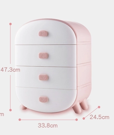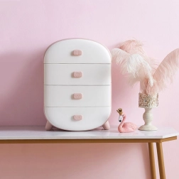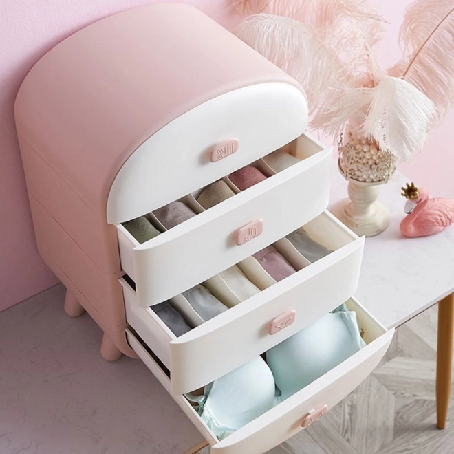 Zaobljeni rubovi, moderan dizajn i nježna ružičasto-bijela boja savršeno se uklapaju u interijer. Komoda je lagana, stabilna i jednostavna za održavanje – dovoljno je prebrisati vlažnom krpom. Može poslužiti i kao originalan noćni ormarić ili pomoćnik na toaletnom stoliću.