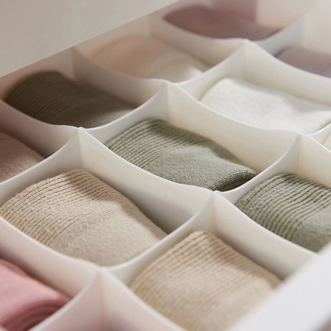 Ladice s pretincima za čarape i gaćice te posebnim uloškom za grudnjake drže sve savršeno preglednim bez gužvanja.