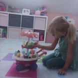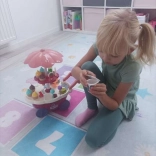 Preslatka dječja kolica za sladoled pretvaraju svaku sobu u mali štand sa slasticama. Nude do 36 dodataka, rotirajuću izložbenu policu i sviraju melodiju uz svjetlosne efekte u suncobranu. Zahvaljujući kotačima i ručki lako se upravlja, potiče kreativnu igru, uloge prodavača i kupca te razvija finu motoriku i osnove računanja.