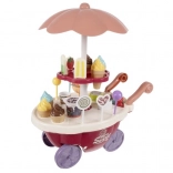 Priredite djeci vlastitu slastičarnicu! Šarena kolica za sladoled sa svjetlima i melodijom nude mnoštvo mogućnosti za igru prodavača. U setu se nalaze kuglice i sladoledi na štapiću, lizalice, čaša, žličica i “novčići” za vježbu plaćanja. Rotirajući višeslojni stalak (360°) lijepo izlaže slatke poslastice.