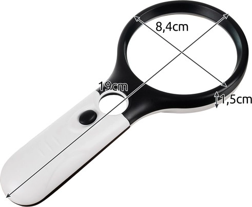 Izrađena od izdržljivih materijala, dodatne specifikacije uključuju promjere leća (veća sa 70 mm, manja s 15 mm), napajana s tri AAA baterije (nisu uključene) i teži samo 118 g. Ova lupa je također izvrstan poklon za starije osobe i djecu — dok starijima olakšava čitanje, djeca je mogu koristiti za otkrivanje prirodnih detalja.