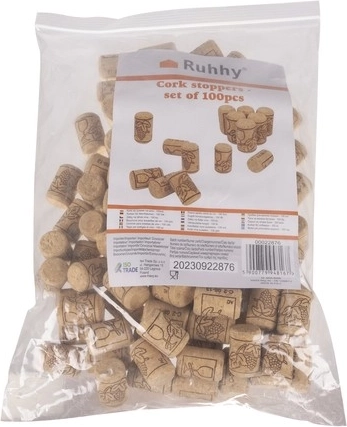 Ovaj set sadrži 100 kvalitetnih čepova od pluta namijenjenih za zatvaranje i očuvanje vina. Izrađeni od prirodnog plutenog drva, ovi čepovi garantiraju visoku kvalitetu i pouzdano brtvljenje, što sprječava prodor zraka u bocu i osigurava da vino zadrži svoj miris i okus.