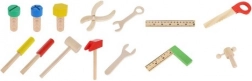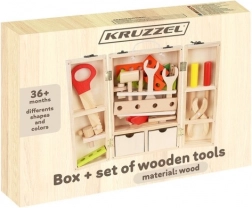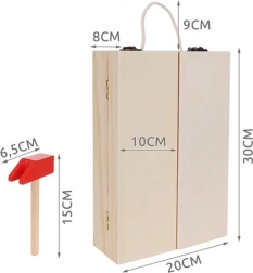 Drveni set alata s kovčegom idealna je igračka za male majstore. Kovčeg je opremljen preglednim pretincima za pohranu svih alata i lako je prenosiv zahvaljujući praktičnoj ručki.