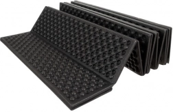 Ova sklopiva podloga dimenzija 180 × 60 × 1 cm izrađena je od kvalitetne EVA pjene, koja se ističe niskom težinom, dugim vijekom trajanja i odličnim termoizolacijskim svojstvima. Profilirana površina s malim izbočinama povećava udobnost, smanjuje klizanje i bolje izravnava neravnine terena.