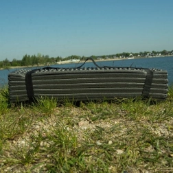 Zahvaljujući vodootpornom materijalu prikladna je za razne uvjete – od jutarnje rose do vlažnog tla. Sustav harmonika-sklapanja i elastične trake s držačem omogućuju brzo pakiranje i lako nošenje na ruksaku ili u ruci.