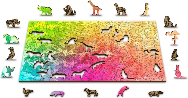 Slagalica sadrži dijelove u obliku životinja i predmeta, koji se mogu koristiti kao male figurice.