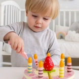 Umetajuće prugaste svjećice i crvena jagoda daju igri autentičnu rođendansku atmosferu te potiču maštu i ulogu malih slastičara.