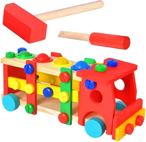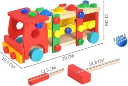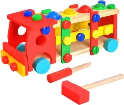 Drveni obrazovni kamion izvrstan je izbor za roditelje koji traže igračke koje potiču razvoj djece. Komplet sadrži razne šarene komponente, čekić i odvijač, koji osiguravaju sate zabave i učenja.