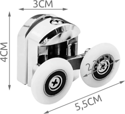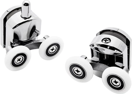 Ovaj univerzalni set klizača za tuš-kabine osigurava glatko kretanje, pouzdano zatvaranje i manje trošenje vodilica. Dvostruki kotačići na kugličnim ležajevima povećavaju stabilnost stakla i smanjuju njegovo naginjanje. Zahvaljujući preklopnoj konstrukciji, kotačići se prilagođavaju obliku profila – prikladni su za kvadratne i polukružne kabine.