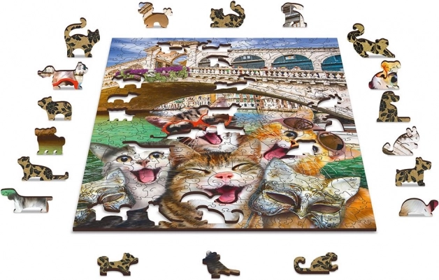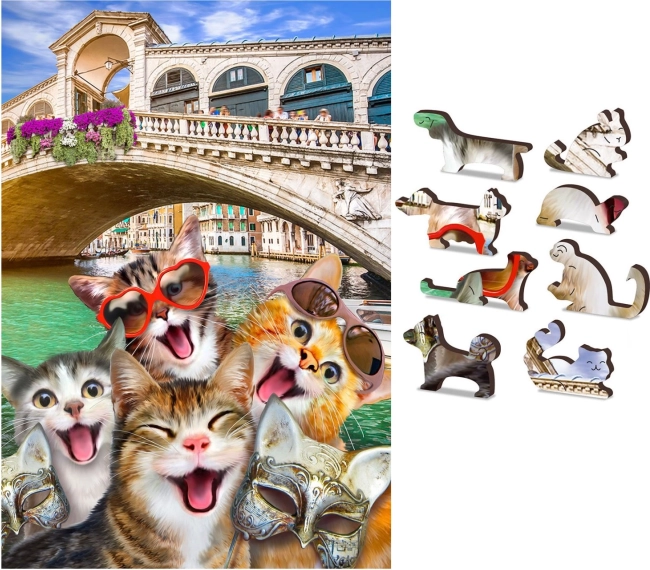 Drvene puzzle Mačići u Veneciji 2u1 donose inovativan pristup klasičnim slagalicama zahvaljujući jedinstveno oblikovanim dijelovima. Dijelovi u obliku poznatih građevina, životinja ili predmeta dodaju svakom slaganju novu dimenziju avanture. Osim toga, zahvaljujući laserski naglašenim detaljima, ovi dijelovi mogu poslužiti kao male figure.