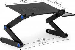 Elegantni i praktični stalak za prijenosno računalo pretvara vaš stol u ergonomsko radno mjesto. Zahvaljujući dvjema neovisnim plohama – za prijenosnik i miš – dobivate udoban raspored sličan klasičnom PC setu. Aluminijsko kućište je lagano, izdržljivo i čvrsto, dok promišljeni ventilacijski otvori podupiru protok zraka i smanjuju pregrijavanje uređaja.