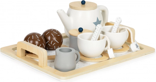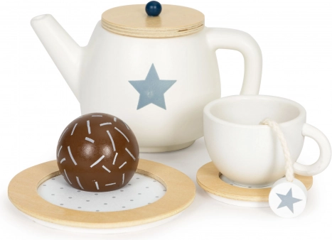 Zahvaljujući setu dijete može preuzeti ulogu odrasle osobe i pozvati na ukusni čaj i slatko posluženje. Osim zabave, vaše će dijete razvijati maštu i manuelne vještine te će naučiti pripremati čaj i upoznati pravila za stolom.