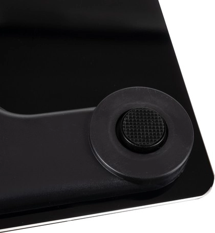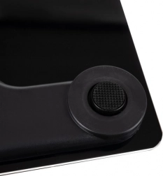 Stilska crna platforma od 0,3 cm kaljenog stakla nosi do 180 kg te nudi stabilnu i sigurnu uporabu u kupaonici.