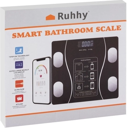 Održavajte pregled nad svojom formom uz inteligentnu vagu RUHHY. Zahvaljujući četiri precizna senzora i Bluetooth povezivanju dobit ćete detaljnu analizu tijela izravno na telefonu. Staklena platforma od kaljenog stakla u elegantnoj crnoj boji uklopit će se u svaku kupaonicu i osigurati sigurno i stabilno mjerenje do 180 kg.
