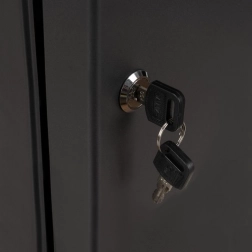 Ormarić se zaključava s priložena 2 ključa. Pripremljene rupice i montažni set (tiple i vijci) omogućuju brzo učvršćivanje na zid.