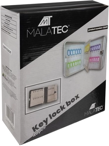Praktičan i izdržljiv ormarić za ključeve MALATEC izrađen je od željeza za veću sigurnost i dug vijek trajanja. Unutra se nalaze dvije čvrste letvice i pomična „knjižna” pregrada – ukupno 48 kukica za ključeve. Svaku kukicu možete označiti naljepnicom s brojem 1–48, pa svaki ključ ima svoje jasno određeno mjesto.