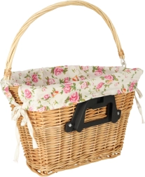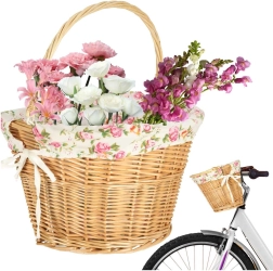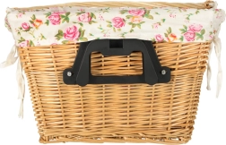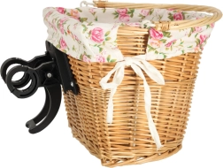 Stilska pletena košara za volan s tekstilnom cvjetnom podstavom idealna je za svakodnevnu vožnju gradom i vikend izlete. Nudi brzi click sustav pričvršćivanja za lako skidanje, čvrstu pletenu izvedbu i praktičnu ručku za udobno nošenje. Podstava s cvjetnim uzorkom daje biciklu šarm i štiti sadržaj.