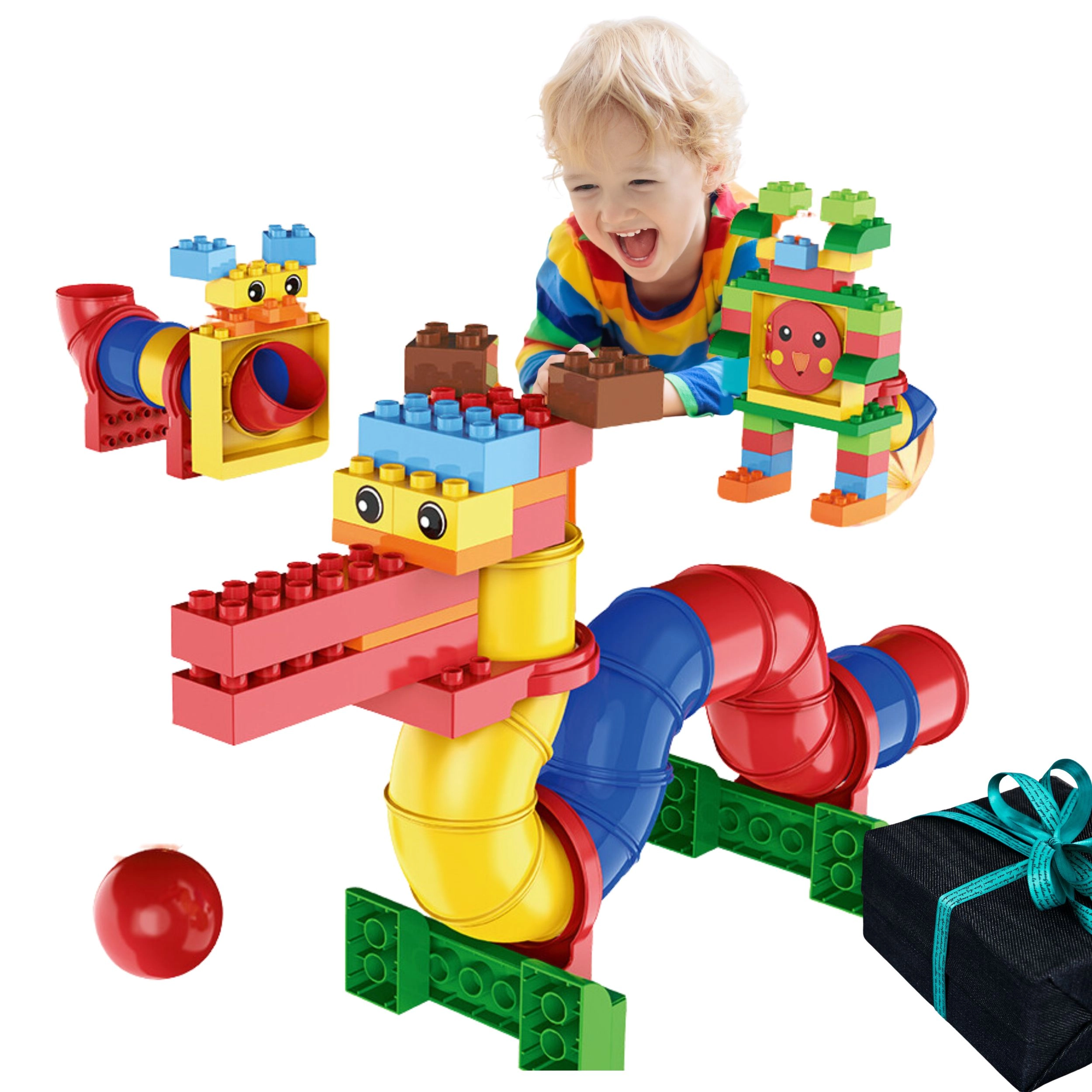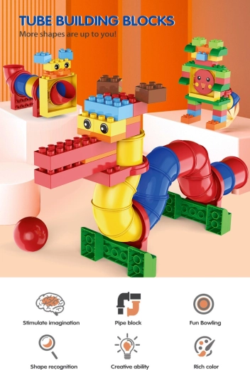 Set nudi bogate mogućnosti igre: djeca mogu složiti do 20 različitih modela i isprobati kako kuglica prolazi kroz cijevne segmente. Veći, “chunky” dijelovi udobni su za male ručice i potiču samostalno istraživanje i stvaralaštvo.
