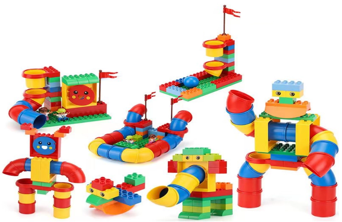 Masivni elementi s cijevima i zakrivljenim dijelovima dobro leže u ruci i lako se spajaju. Idealno za početnike od 3 godine.