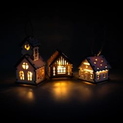 Kućicu možete lako objesiti pomoću uzice ili jednostavno postaviti na komodu, policu ili blagdanski stol. Isporučuje se potpuno sastavljena – dovoljno je umetnuti LED svijeću i uživati u toploj atmosferi.