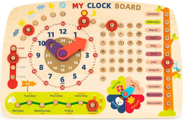 Ploča omogućuje djeci učenje o danima u tjednu, mjesecima i godišnjim dobima, što je sjajan način za zabavno razvijanje manuelnih vještina.