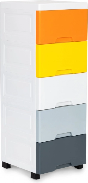 Uživajte u preglednom i stilskom odlaganju igračaka, kozmetike ili sitnica. Ovaj visok i uzak organizator štedi prostor, dok pet prostranih ladica u različitim bojama pomaže pri razvrstavanju i brzom pronalaženju stvari. Čist bijeli okvir uklapa se u moderne interijere i lako se održava.