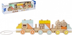 Ovaj povlačeni drveni vlak nudi sjajnu igračku za razvoj vještina djece. Njegovi pojedinačni dijelovi izrađeni su od drva i mogu se lako vaditi i ponovno sastavljati prema želji, što pomaže razvoju dječje mašte i koordinacije. Svaki dio tereta je originalan i po obliku i po boji, što potiče razvoj osjetljivosti na boje.