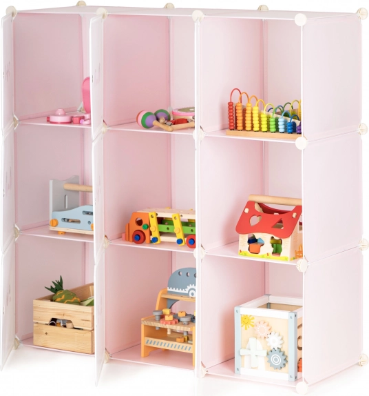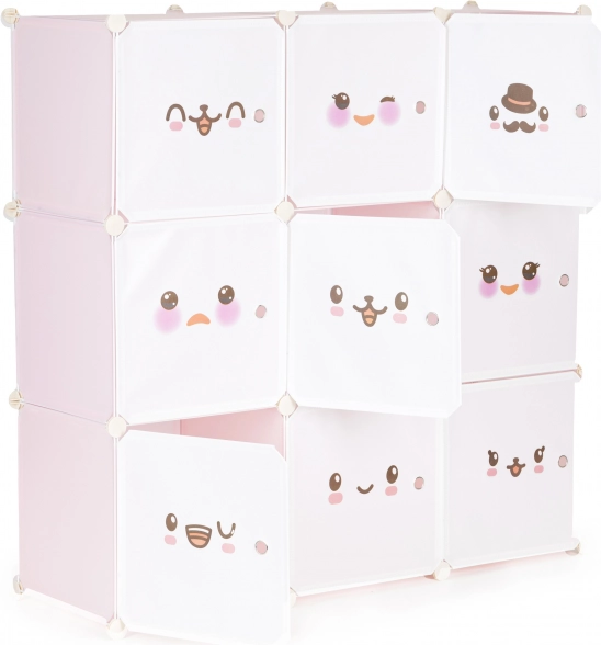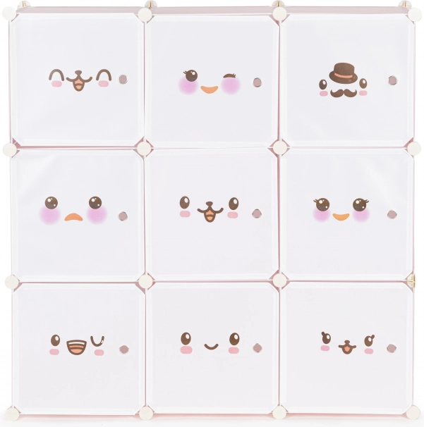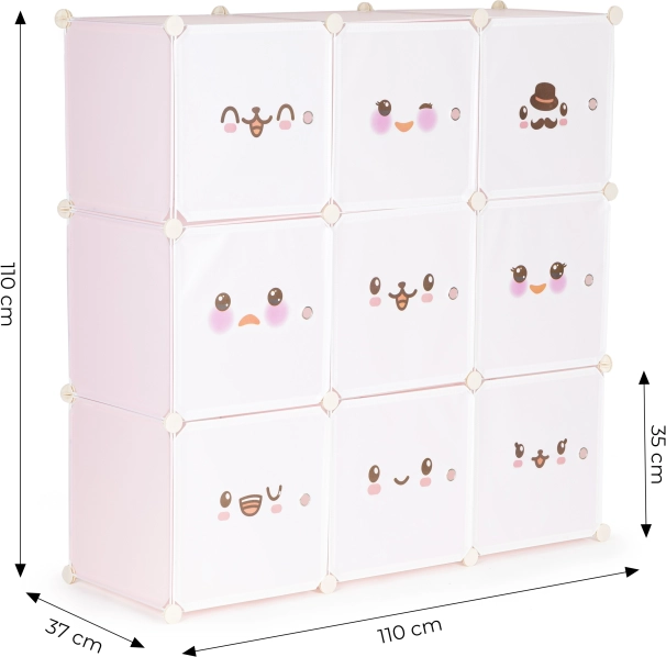 Ovaj modularni dječji ormar nudi pregledno i zabavno odlaganje igračaka, knjiga i sitnica. Devet kocki s vratima vedrih motiva stvara ugodno okruženje i motivira djecu na samostalno održavanje reda. Zahvaljujući mogućnosti prilagodljive konfiguracije lako ćete oblik i raspored ormara prilagoditi prostoru i potrebama.