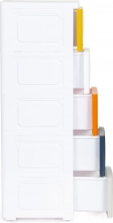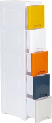 Održavajte red stilno i bez napora. Ovaj svestrani plastični regal s pet šarenih ladica nudi dovoljno prostora za igračke, kozmetiku i sitnice u kućanstvu. Bijeli okvir djeluje čisto i moderno, ladice s profiliranim ručkama ugodno se izvlače, a sigurnosni zasuni sprječavaju njihovo neželjeno ispadanje.