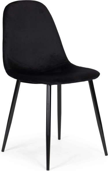 Stilizan set od četiri stolice ističe se modernim dizajnom, baršunastim presvlakama i metalnim nogama za dugotrajnost. Nudi visoku udobnost sjedenja zahvaljujući kvalitetnoj pjeni i profiliranom naslonu. Zaštitne kapice štite pod, a univerzalno crno izdanje pristaje blagovaonici, dnevnom boravku i uredu.