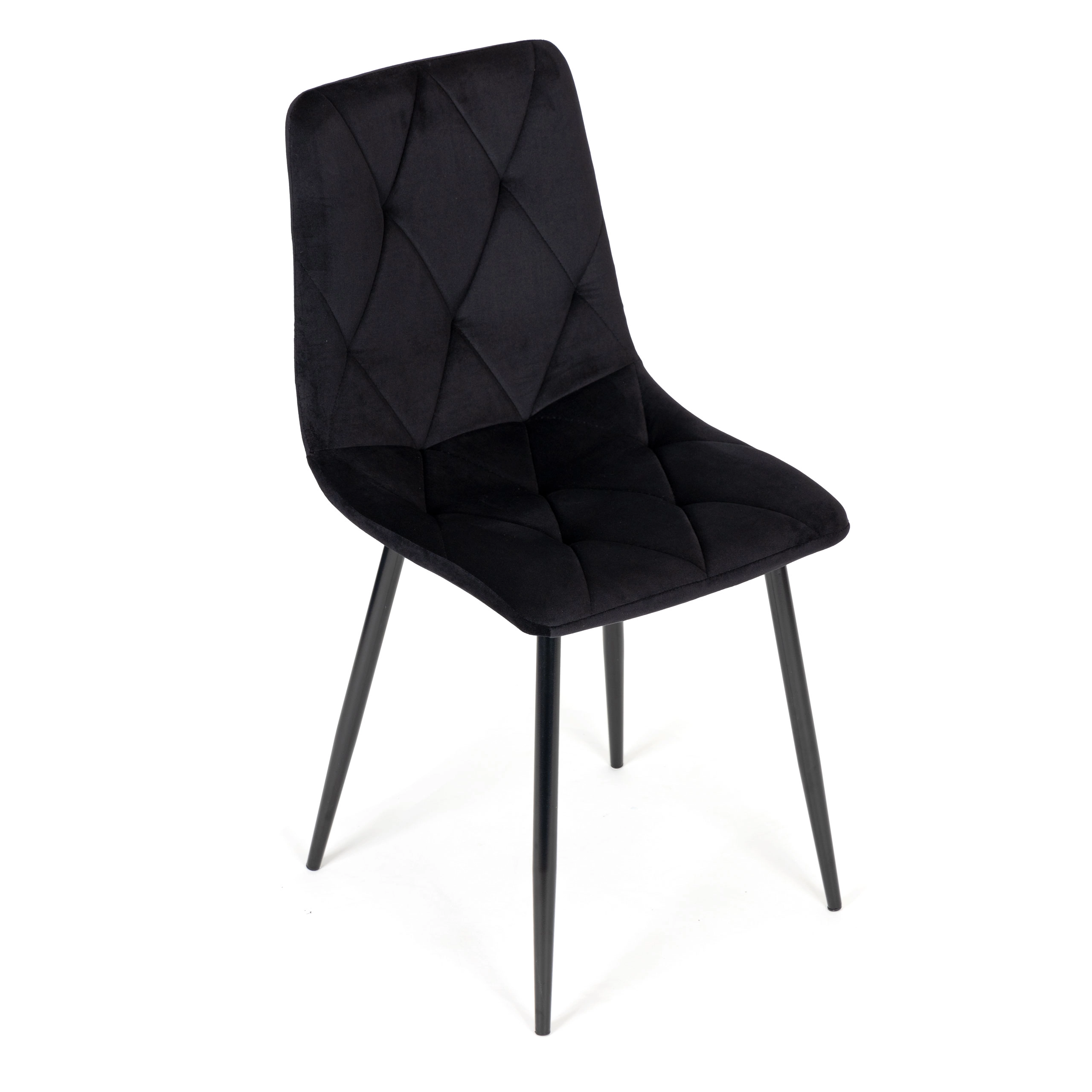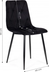 Set stolica ModernHome ističe se finim baršunastim tapeciranjem s dijamantnim prošivom, koje djeluje luksuzno i istodobno je ugodno na dodir. Crne metalne noge osiguravaju čvrstoću i stabilnost, dok zaštitne završetke sprječavaju ogrebotine na podu. Zahvaljujući univerzalnom izgledu, stolice se izvrsno uklapaju u blagovaonicu, dnevni boravak, kuhinju i ured.