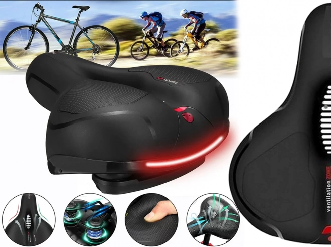 Udobno biciklističko sjedalo s mekanom ispunom i reflektirajućim elementima za sigurnu vožnju.