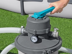 Čvrsta konstrukcija s 360° okretljivim priključcima omogućuje lako spajanje crijeva s bilo koje strane. Ugrađeni manometar i odstranivi mrežasti košarasti predfilter za zadržavanje lišća i krupnijih nečistoća olakšavaju održavanje, pa se možete u potpunosti posvetiti stvaranju ugodnih uspomena s obitelji!