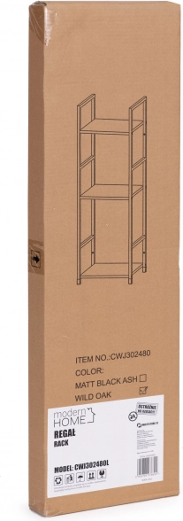 Police od MDF ploče s površinom u dekoru drva izdržljive su i jednostavne za održavanje. Prašnasto lakiran metalni okvir od kvadratnih profila (12 mm) osigurava čvrstoću i dug vijek trajanja. Zaštitni završeci štite vaš pod, a priloženi kutnik za pričvršćivanje na zid povećava sigurnost u kućanstvima s djecom.