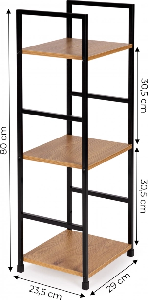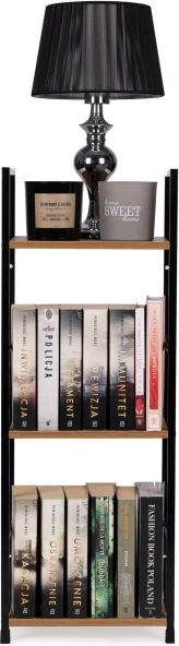 Stilska knjižnica u industrijskom stilu kombinira crni metalni okvir i MDF police u drvenom dekoru. Nudi 3 praktične police, stabilnu konstrukciju i univerzalnu primjenu u dnevnoj sobi, spavaćoj sobi, hodniku i kupaonici. Zahvaljujući kompaktnim dimenzijama pristaje i u manje prostore, lako se sastavlja i ne grebe pod zahvaljujući zaštitnim završecima.