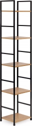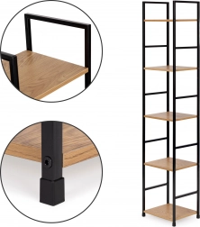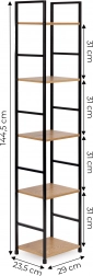 Ova moderna polica u industrijskom LOFT stilu idealna je za manje i veće interijere. Uzko izvedenje štedi prostor, dok pet polica pruža dovoljno mjesta za knjige, dekoracije, biljke i kupaonske dodatke. Prahom lakirani metalni okvir osigurava stabilnost i dug vijek trajanja, a police od MDF-a s dekorom drva daju topao, prirodan izgled.