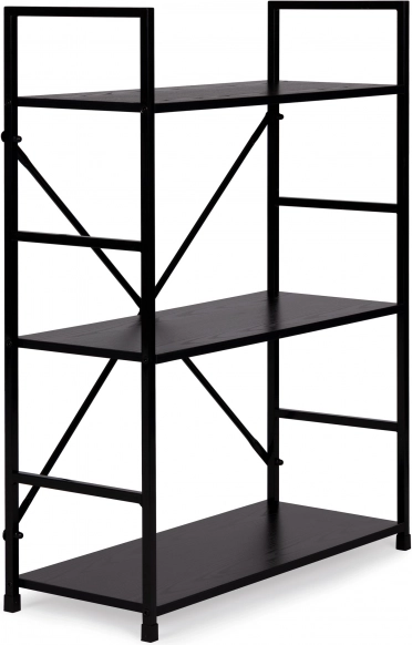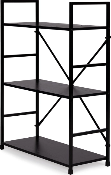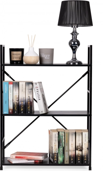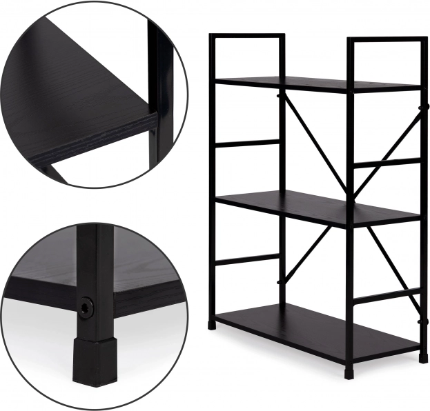 Knjižnica LOFT spaja minimalistički dizajn i izdržljive materijale. Tri prostrane police od MDF-a s dekorom drveta nadopunjuje čvrsta metalna konstrukcija s križnim ojačanjem za izvrsnu stabilnost. Zahvaljujući univerzalnoj crnoj izvedbi lako se uklapa u moderne i industrijske interijere.
