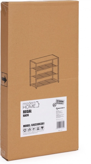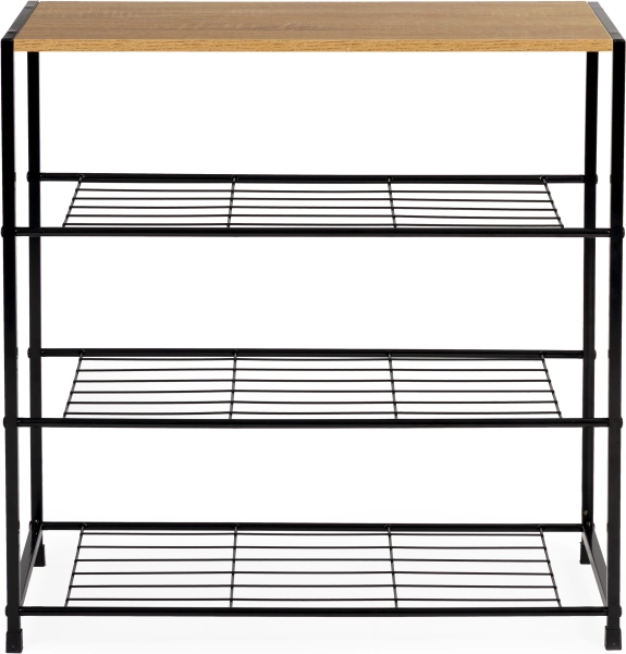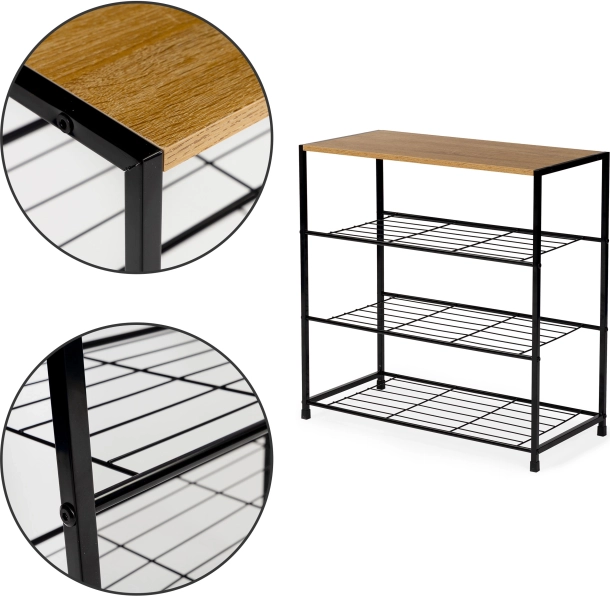Ovaj moderni stalak za cipele iz kolekcije MODERN HOME spaja praktično rješenje za pohranu obuće s bezvremenskim industrijskim izgledom. Gornja ploča u dekoru hrasta (MDF, nosivost do 10 kg) služi kao odlagališna površina za sitnice, cvijeće ili dekoracije, dok tri metalne police pregledno organiziraju vašu obuću.